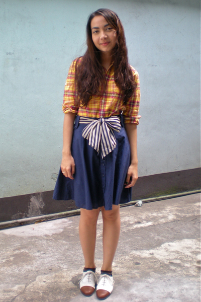 Yellow Giordano Kids Shirts Blue Thrifted Skirts White Vintage Shoes.